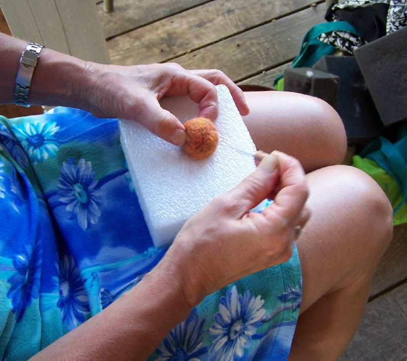 Deb was needlefelting catnip balls - she's thinking ahead for holiday sales