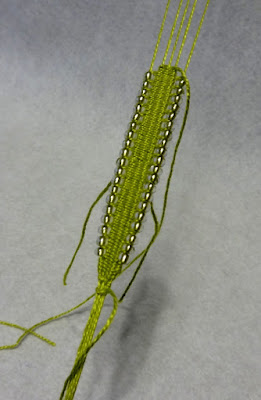......then 3 more........these are all awaiting the jewelry findings. I might make a couple more bracelets so there can be one on each table for people to look at as they weave their own.........